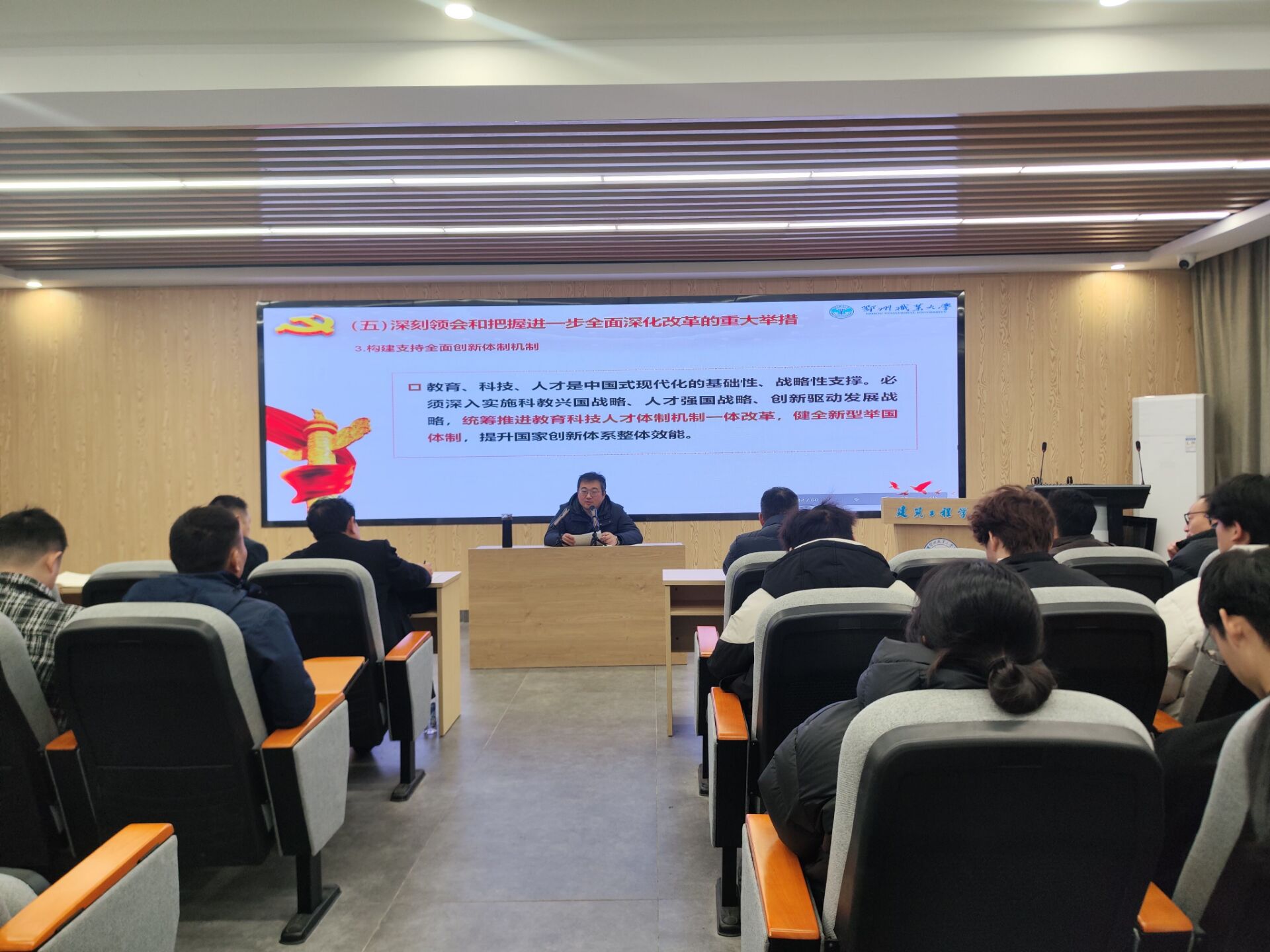 他强调,全体师生要深入学习全会精神,把握新时代中国特色社会主义思想的丰富内涵,以实际行动践行党的教育方针,为实现中华民族伟大复兴的中国梦贡献力量。高飞还鼓励青年学生,要坚定理想信念,勇于创新创造,积极投身于国家的科技发展和社会主义现代化建设中去。通过此次宣讲,师生们对党的二十届三中全会精神有了更加深刻的理解,对如何将学习成果转化为推动学校和自身发展的动力有了更加明确的方向。