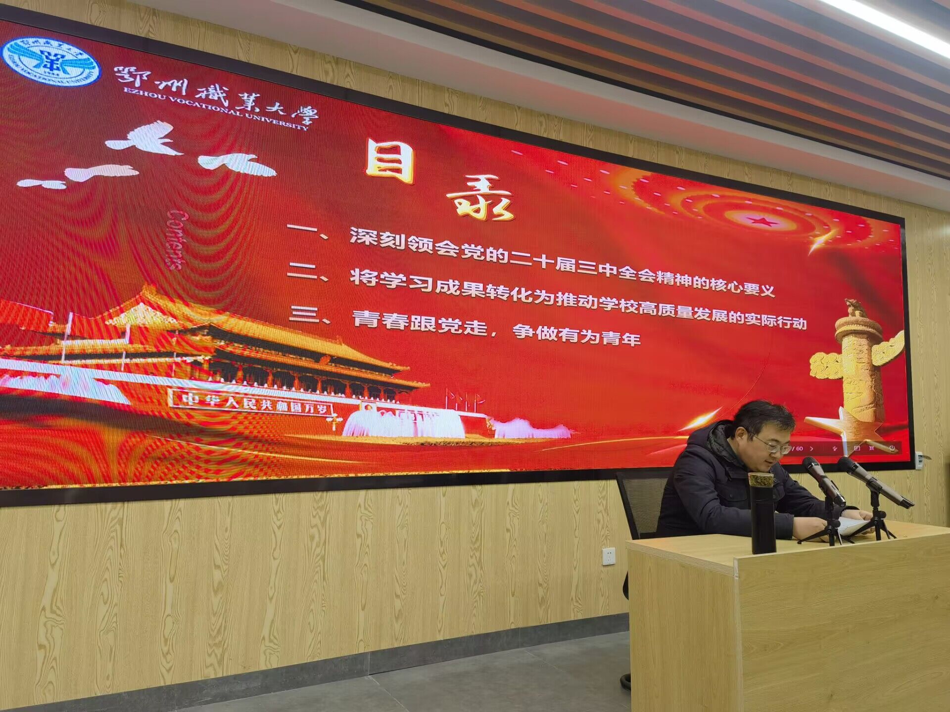 高飞围绕深刻领会党的二十届三中全会精神的核心要义、将学习成果转化为推动学校高质量发展的实际行动以及青春跟党走、争做有为青年三个部分进行宣讲。