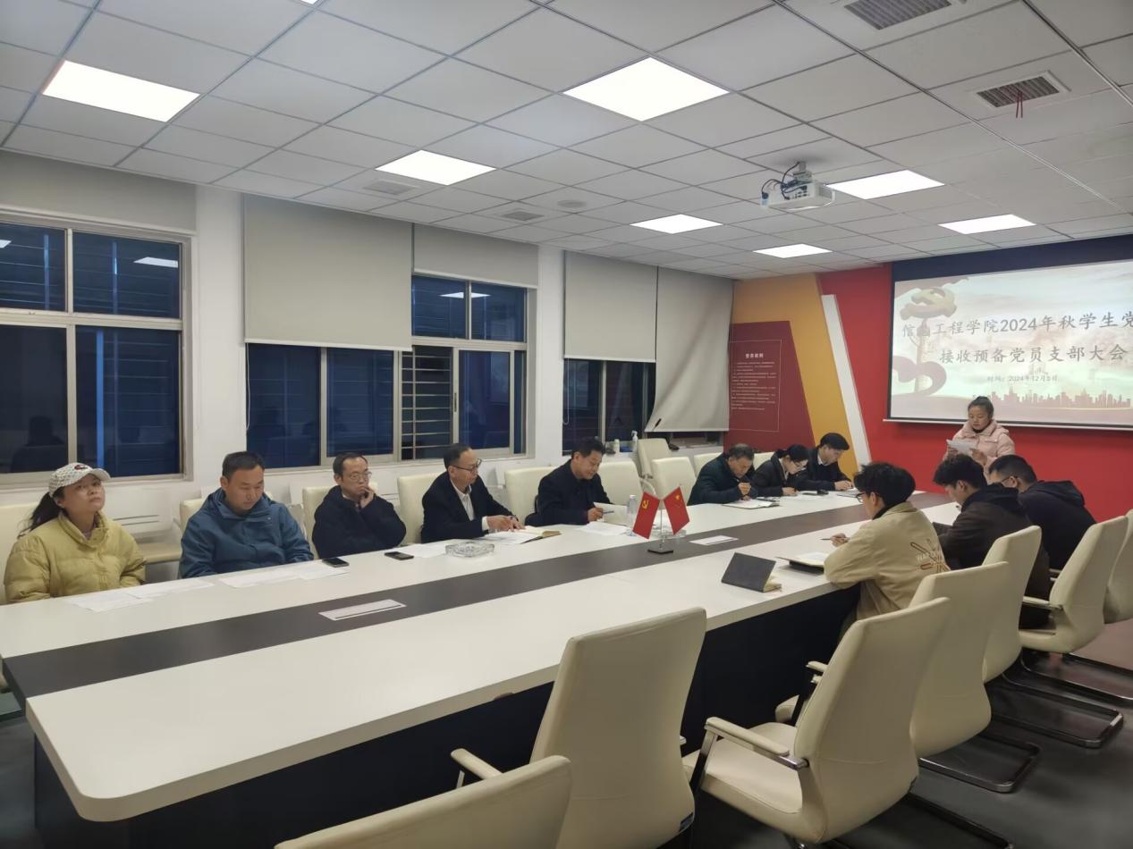 (通讯员:张程、汪鑫媛)根据《中国共产党发展党员工作细则》、《鄂州市发展党员工作规程》的相关要求,2024年12月5日,信息工程学院党支部在三号楼六楼党员活动室召开2024年秋预备党员接收大会及入党宣誓仪式,审议接收史哲豪等4名发展对象为预备党员的相关事宜。学院党总支书记袁江顺、副书记万海访、学生支部书记张程、尹洪峰、党员教师、入党介绍人及党员学生参加大会。