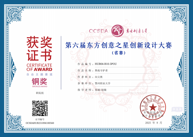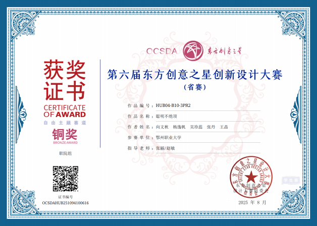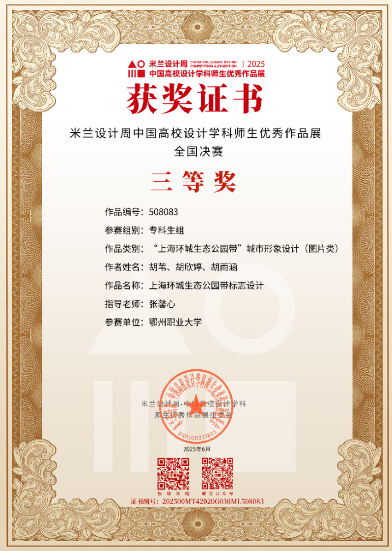 本专业在科技创新方面表现出色。教师团队积极参与科研项目,发表学术论文三十余篇,并与企业合作开展技术研发;专业教学团队编写教材,负责校级精品资源共享课程《数字创意设计》。2019年指导学生参加全国“互联网+”大学生创新创业大赛获得省级铜奖1项,2022年指导学生参加全国大学生“挑战杯”创业计划竞赛获得省级铜奖1项。指导学生参加全国职业院校技能大赛、全国大学生广告艺术设计大赛等赛项,每年获得省级二等奖、三等奖多项。2025年6月,在“米兰设计周中国高校设计学科师生优秀作品展——全国决赛”中,动漫制作技术专业学生胡苇、胡欣婷、胡雨涵凭借作品《上海环城生态公园带标志设计》荣获全国三等奖。
