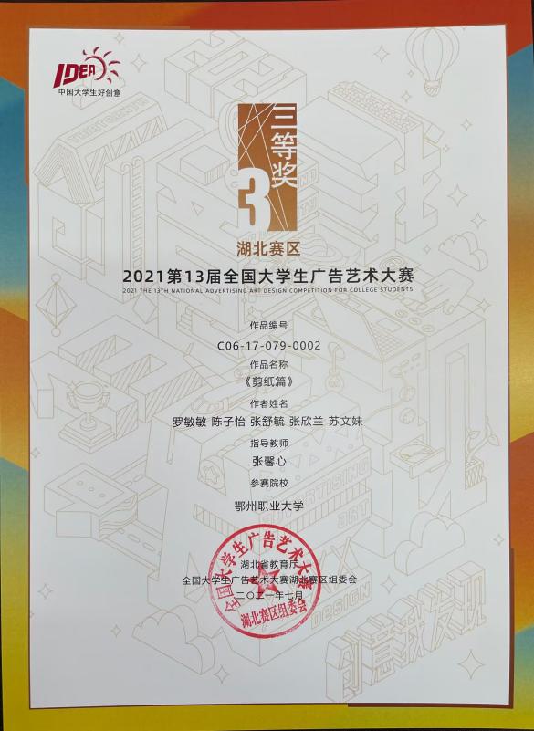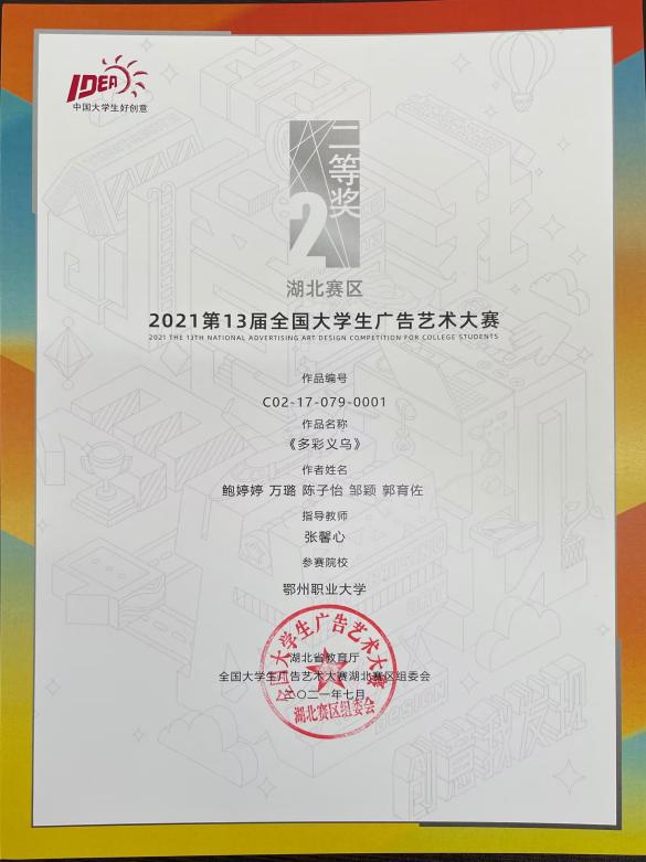 在教学工作中,长期承担信息工程学院《数字造型设计》《动画分镜头设计》《设计实践》等专业核心课程的教学任务。多次指导学生参加全国大学生广告艺术设计大赛、米兰设计周等国内外高水平设计赛事,均获国家级、省级大奖。带领学生创作的动画短片、IP角色形象及文创产品等设计方案,在多项政企项目竞标中成功中标。 个人创作艺术作品多次入选重要美术展览:其中,作品《春在枝头已十分》入选“第十四届全国美术作品展览壁画展区”。 设计作品《纵横江城万象间》入选“第十三届湖北省美术作品展览”。 设计作品《罔闻》入选“第十二届湖北省美术作品展览”。 |
