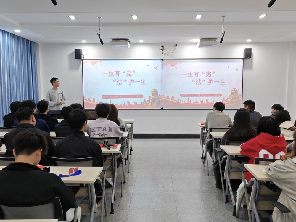 活动以“一生有‘宪’ ‘法’护一生”宪法宣传宣讲环节拉开序幕。宣讲人围绕宪法的起源、核心内容以及与青年生活的密切联系,用通俗易懂的语言结合鲜活案例,从校园生活中的权利义务到社会层面的法治实践,层层递进地解读宪法精神,让在场同学深刻认识到宪法不仅是国家的根本大法,更是守护每个人一生的“权利保障书”。