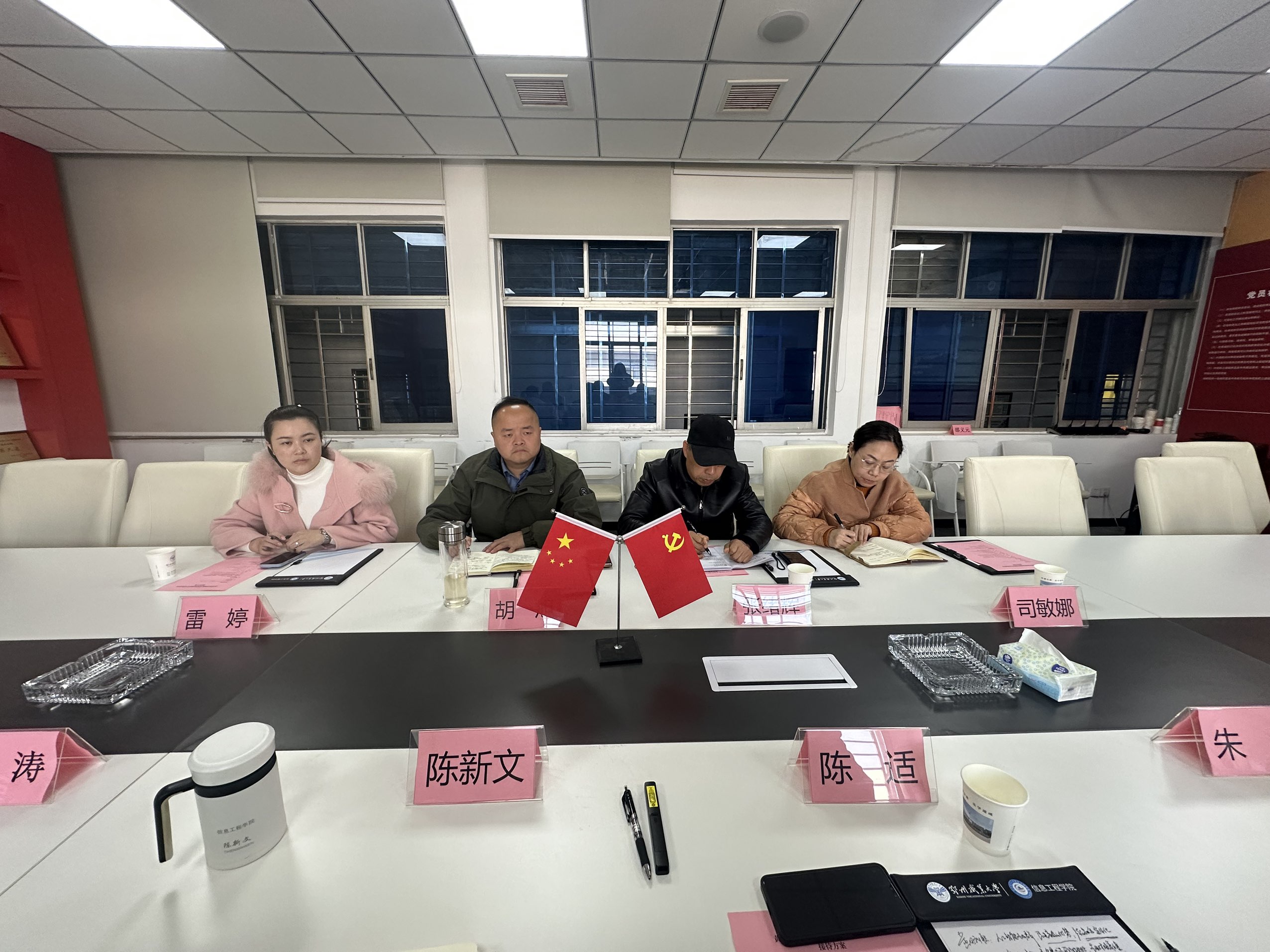 黄冈科技职业学院数据工程学院副院长胡旭、大数据教研室主任司美娜、就业干事雷婷,我校信息工程学院院长陈新文、党总支书记朱冰、副院长张璟,人工智能教研室主任潘涛参加调研座谈。