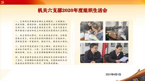 4月1日下午,机关六支部召开2020年度组织生活会和民主评议党员大会,会议由支部书记李雄舟主持,参加人员为巡查员张华春以及全体党员。