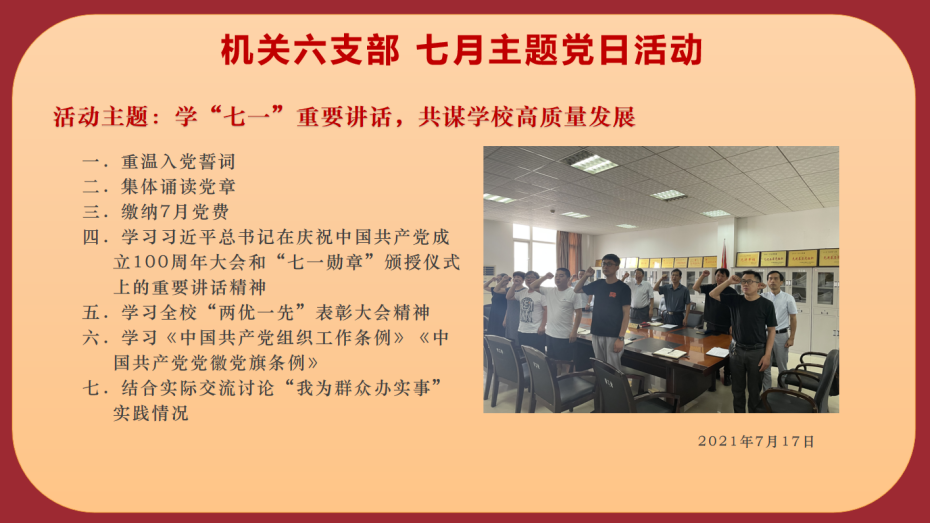 2021年机关六支部7月主题党日活动