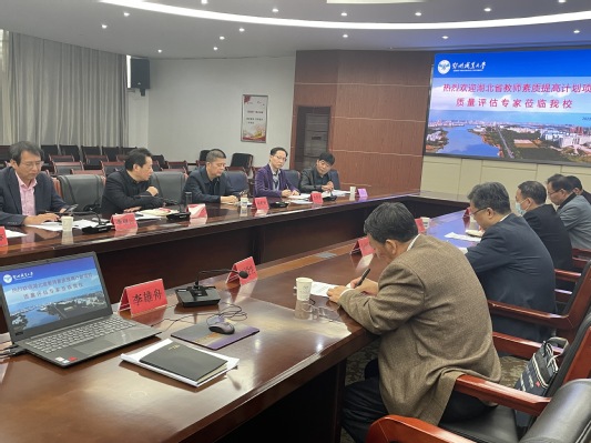 10月27日,湖北省教育厅职业教育与成人教育处处长何泽云率领副处长杨乾秋、项目办公室主任宋会林和专家工作小组一行六人来到我校,对我校承接的2021年湖北省职业院校教师素质提高计划项目进行质量评估与指导。校党委书记万国光、校长周峰、副校长杨殿生和教务处、人事处、商学院负责人参与检查评估。