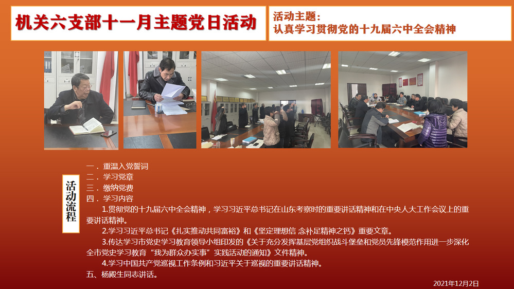2021年机关六支部11月主题党日活动