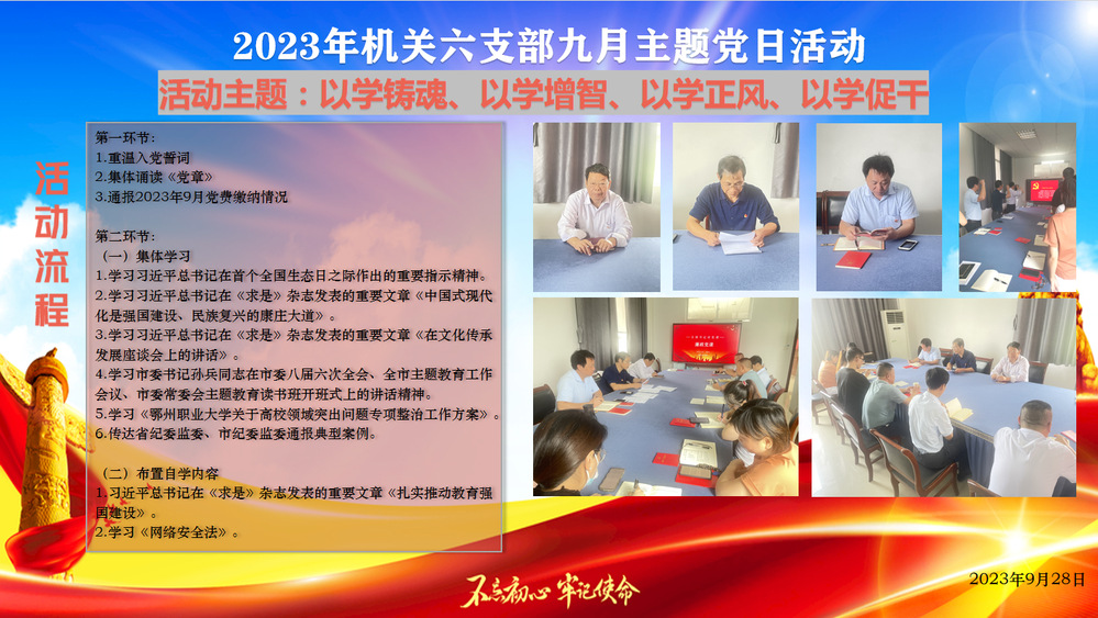 发布者:周晓兰发布时间:2023-09-28浏览次数:10所在栏目:支部活动