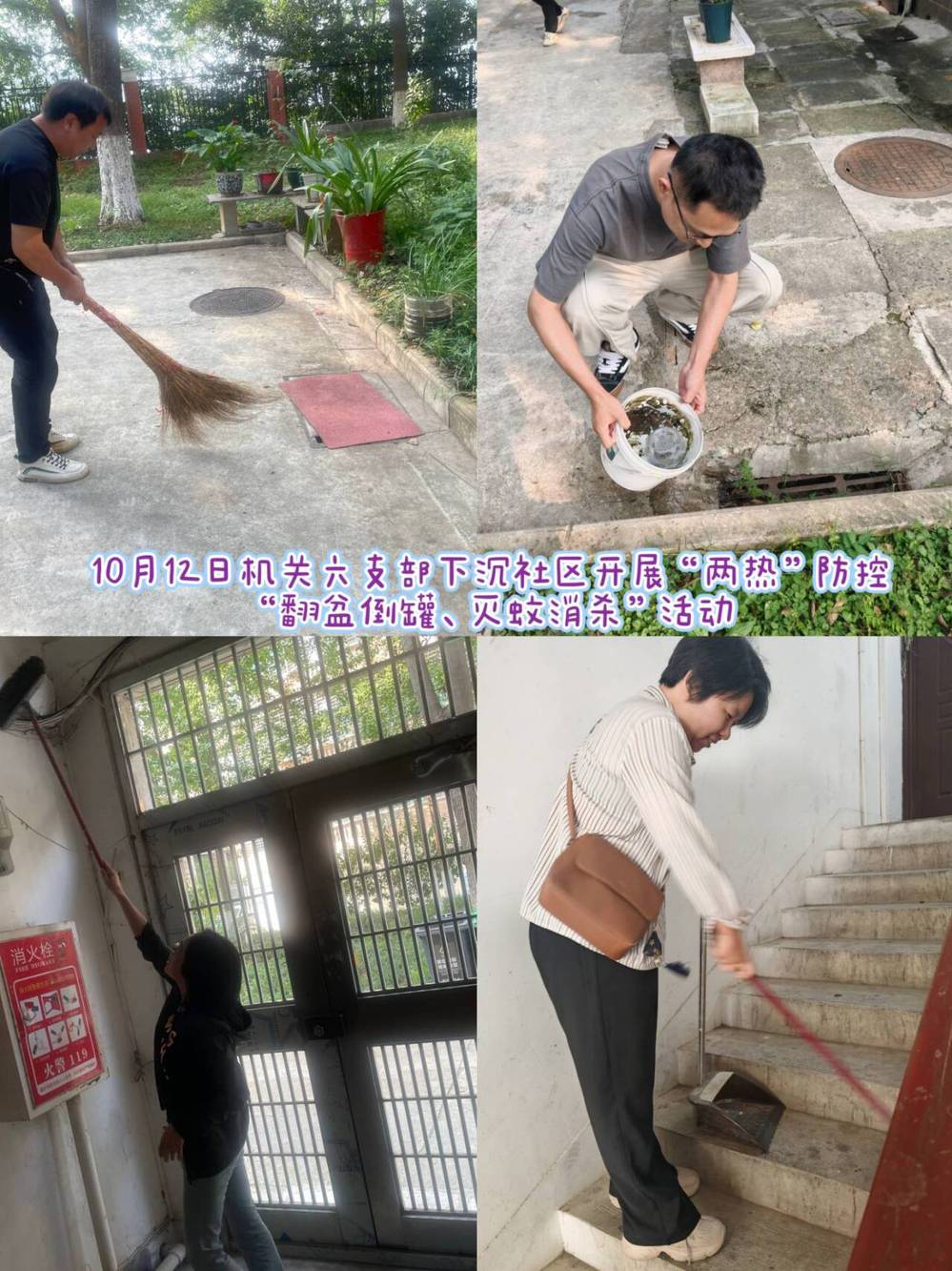 机关六支部10月12日、10月15日下沉社区开展“两热”防控“翻盆倒罐、灭蚊消杀”活动