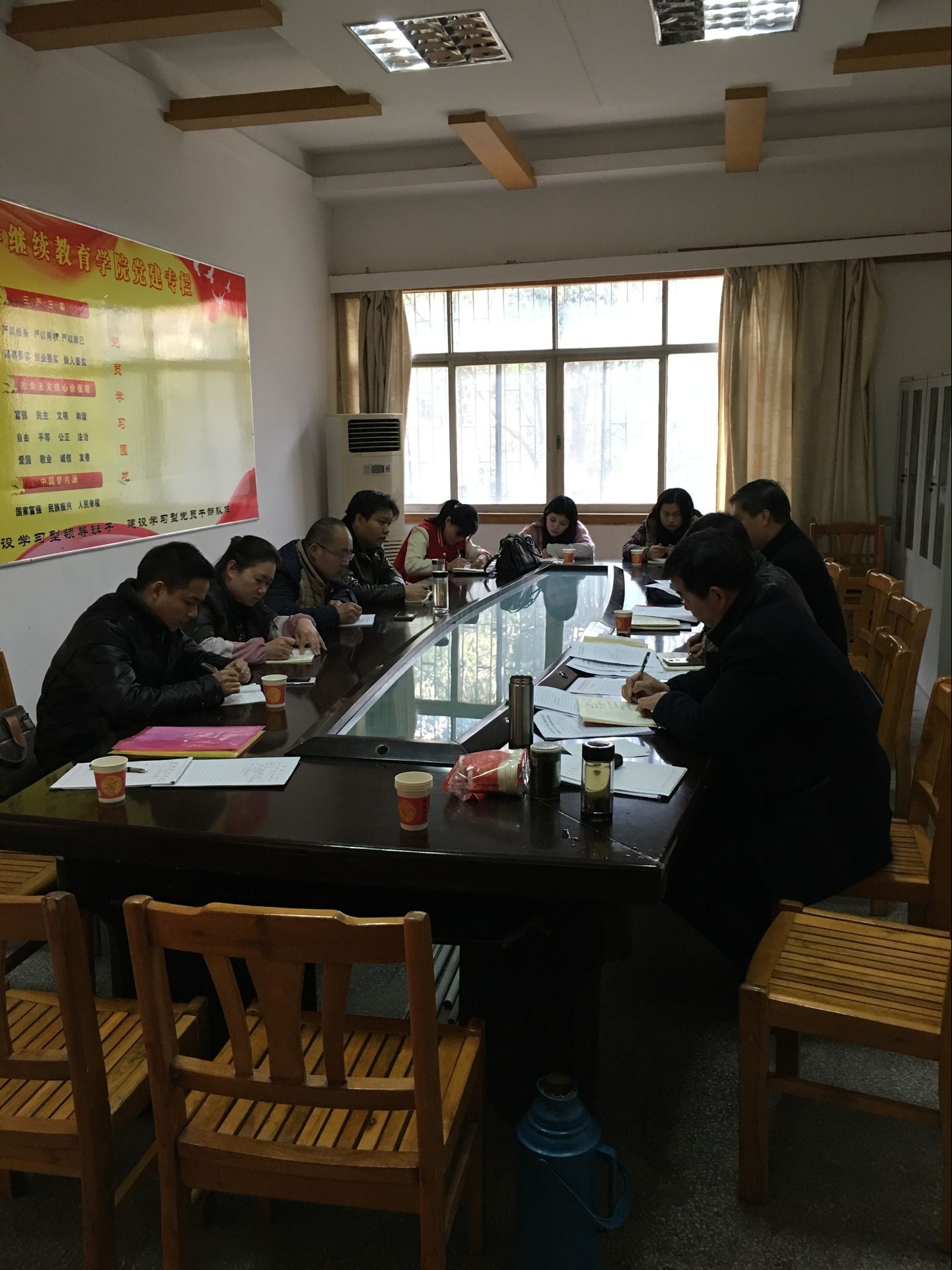 2、共同讨论《2016年鄂州职业大学党风廉政建设工作考核标准》草案。议案内容共七大项,下分十七个小项,在叶宏院长和黄实书记的解读与剖析下,我们完全领会文件精神。我院的所有党员同志没有任何异议,文件精神将会贯彻落实且遵照执行。