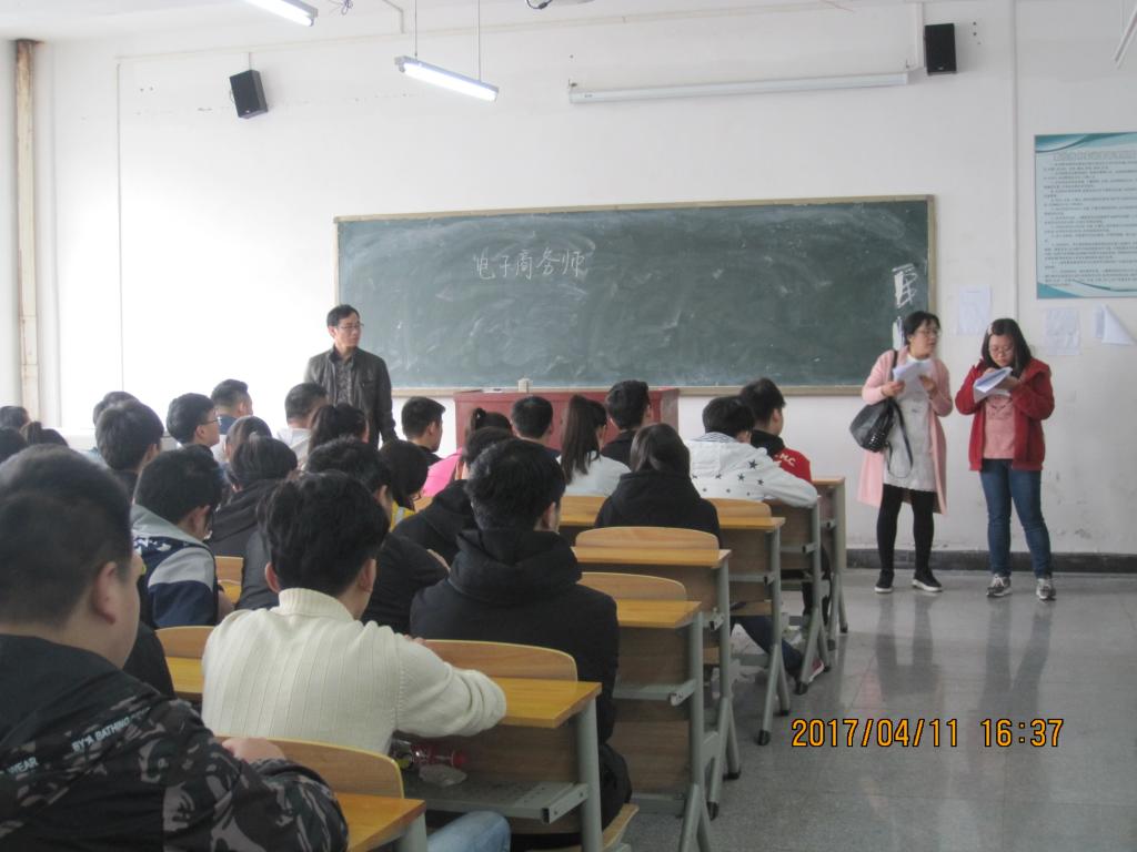 2017年第一期就业培训班于 4月 11日 在3号教学楼开班,参加此次培训的学员共计197人,培训专业为电子商务。学员经过两个月累计完成240学时的理论学习和实践,通过校培训鉴定中心组织的理论考试和实践考核后,颁发电子商务师四级职业资格证书。培训进程全部完成以后,接受市人社局、财政局、就业局的验收与审核。