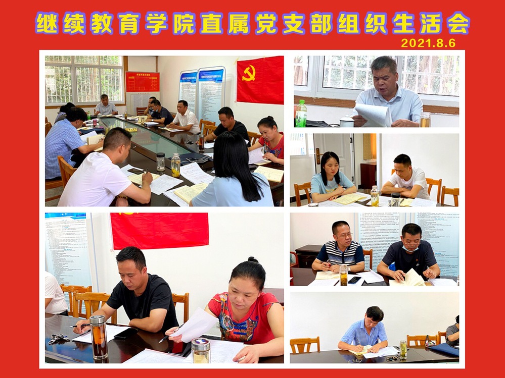 按照学校党史学习教育工作的安排部署,8月6日下午2:40至6:30分,继续教育学院全体党员在党员活动室成功召开了党史学习教育专题组织生活会。根据组织生活会议程,会前广泛征求意见、积极开展谈心谈话,随后支委成员和全体党员进行了党性分析和对照检查,交流了党史学习心得体会,开展了批评与自我批评。此次会议由继续教育学院支部副书记叶建华同志主持,议程如下: