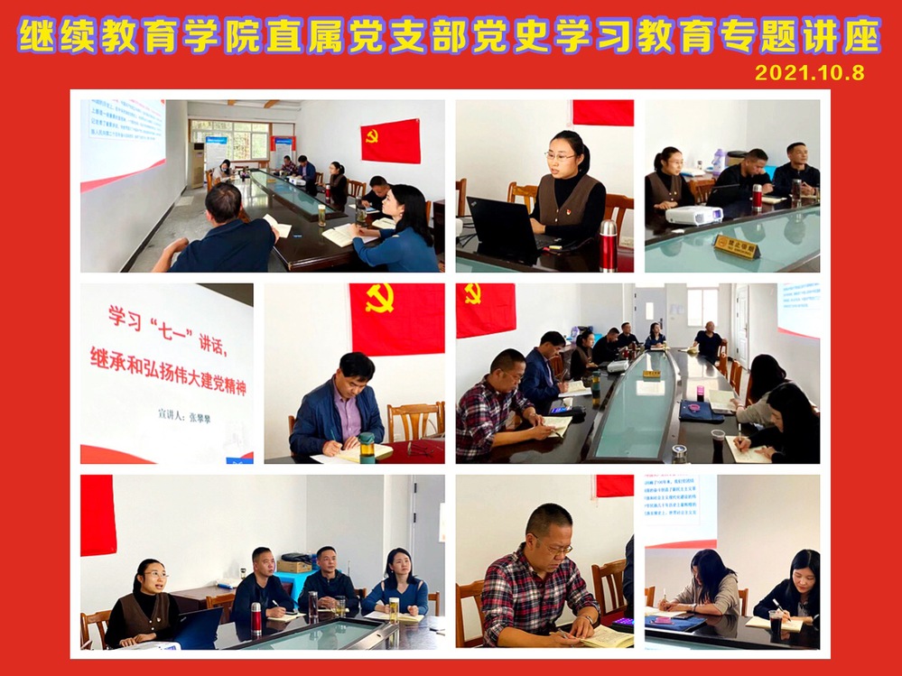 按照学校党委安排,认真落实好党史学习教育专题宣讲工作,10月8日下午,继续教育学院直属支部邀请思政课部张攀攀老师来学院作党史学习专题讲座。会议由支部书记江绍安主持。