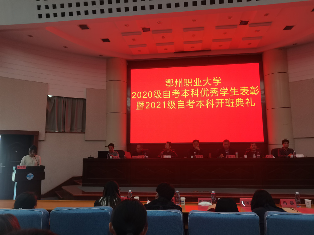 2021年11月4日下午2:00,我校2020级自考本科优秀学生表彰大会暨2021级自考本科班开学典礼在图书馆二楼报告厅举行。会议由继续教育学院副院长刘军主持,副校长胡海平、继续教育学院院长黄实、武汉长江教育专修学院申超副院长、苏以全副院长、李霞部长参加了开学典礼并发表讲话,我校继续教育学院自考办、学习服务中心全体教师与300余名学生参加了开学典礼。