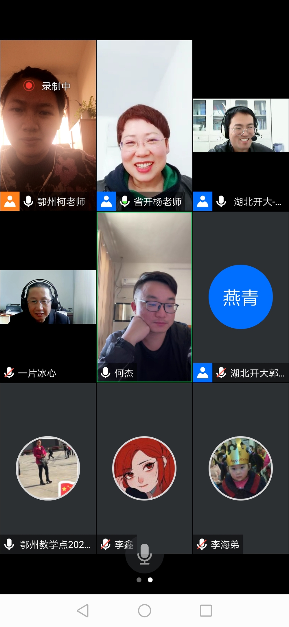 2021年秋季学期,湖北开放大学鄂州教学点的学生通过腾讯会议方式完成远程视频答辩。