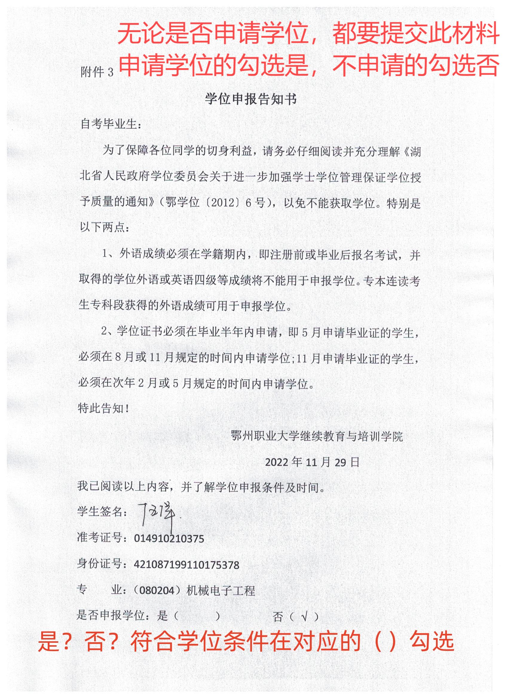 7、要申请学位但未达到学位条件的考生,请慎重考虑本次是否申请办理毕业,学位受理对象只针对当次毕业生。(如:未达到学位条件已申请毕业,则表示该学业已结束,不能再参加课程及学位外语考试。)