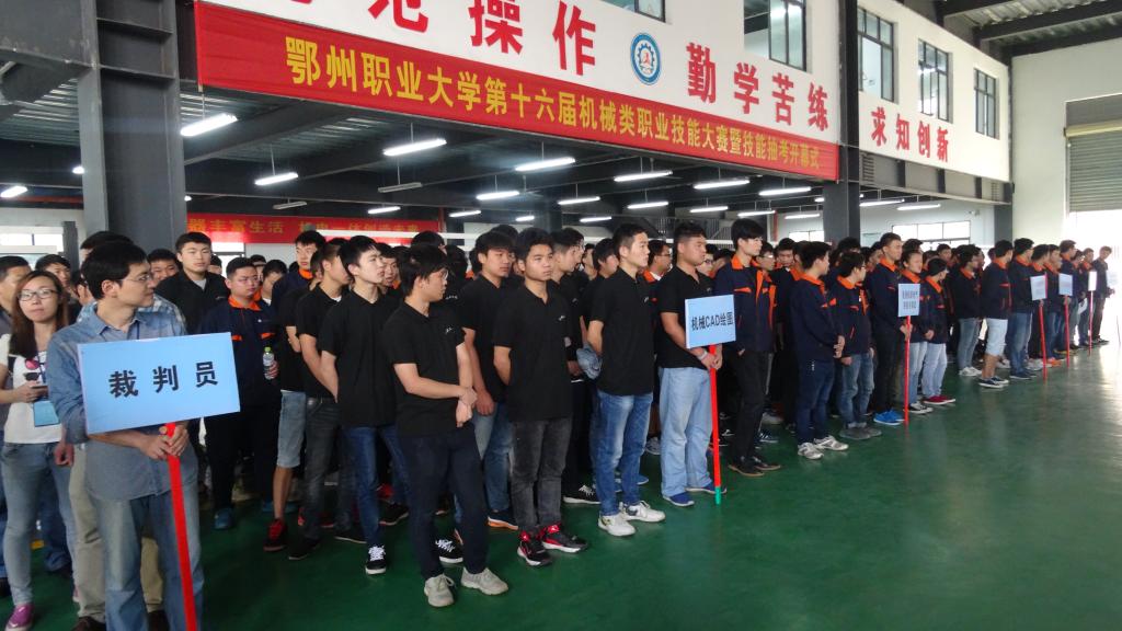 2016年6月4号上午8:00,鄂州职业大学第十六届机械类技能大赛暨技能抽考在机械综合楼一楼实训中心隆重举行。本次大赛得到了学校领导的高度重视和大力支持,校党委副书记周岫、副校长杨殿生、教务处处长陈适、副处长黄世宽、学工处副处长王冠华以及机械工程学院班子成员和20余名教师代表出席了本次活动。开幕式由机械工程学院院长熊裕文主持。