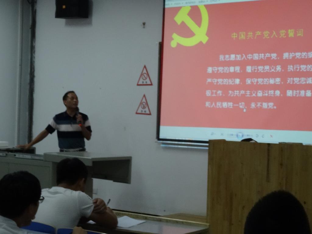 2017年9月20日晚7:30,在机械楼jx409教室,学院党总支书记刘宏文给16级100余名入党积极分子上党课。