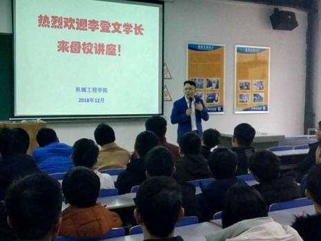 32018年12月21日下午3点,鄂州职业大学知名校友李登文回母校,给机械工程学院17级和18级学弟学妹做了一场精彩纷呈的报告会。