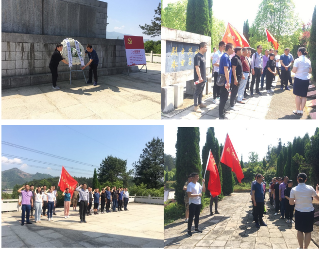 来到阳新龙港烈士陵园,映入眼帘的是巍峨耸立,庄严肃穆的红军烈士纪念碑。在红军烈士纪念碑前,大家排着整齐的队伍,向革命烈士默哀、敬献花篮、重温入党誓词、奏唱国歌、鞠躬致敬,并且认真聆听了那段悲壮的革命历史。 随后我们跟随阳新县龙港镇工作人员一起,驱车来到了龙港革命历史纪念馆和苏维埃政府红军街,探访了当年革命先烈们留下的足迹,倾听了鄂东南革命历史,一幅幅图片、一件件文物重现了革命先烈们的战斗历程,再现了中国共产党在困难深重的历史背景下英勇斗争、发展壮大的艰辛历程。 通过参观学习,全体党员重温了党的辉煌历程,缅怀革命先烈的丰功伟绩,实地上了一堂生动的党史教育课,全体党员对老一辈无产阶级革命家为党的事业忠贞不渝视死如归的坚定信念留下了深刻印象,激发了大家爱党、护党、拥党的决心和信心,使自己的心灵受到了一次深刻洗礼。大家表示在今后的工作中,认真“学党史、悟原理、开新局”,将进一步坚定政治信念,始终保持共产党员先进性,以合格党员的标准严格要求自己,履职尽责,努力学习,不断提升政治素养和业务能力,在本职工作岗位上踏实工作,以良好的工作表现庆祝党的100岁华诞。