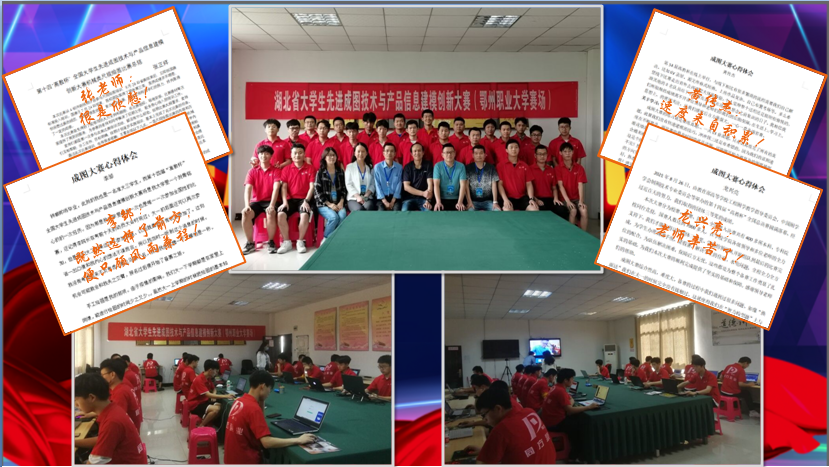 2021年4月至7月,经学院研究决定,由机械设计与制造专业牵头、以机械制图课程组教师为核心,组织智能制造专业群下属几个专业的学生,开展了以进军第十四届“高教杯”全国大学生先进成图技术与产品信息建模创新大赛为目标的集体培训、训练、模拟比赛、校赛、省赛,备赛师生经历了 “白加黑、七加二”的无数个日夜战鏖战,终于获得了机械类团体三等奖,个人全能二等奖一个,三等奖两个。湖北省有近20所高职院校进军国赛,仅有2所高职院校获奖(均为三等奖)。