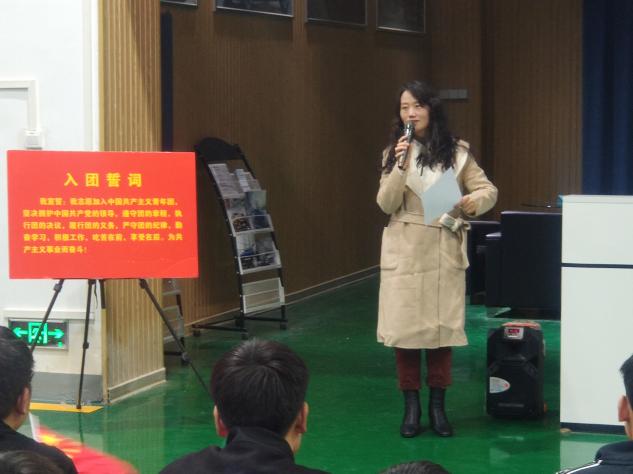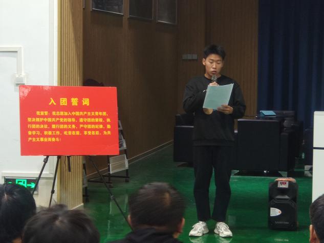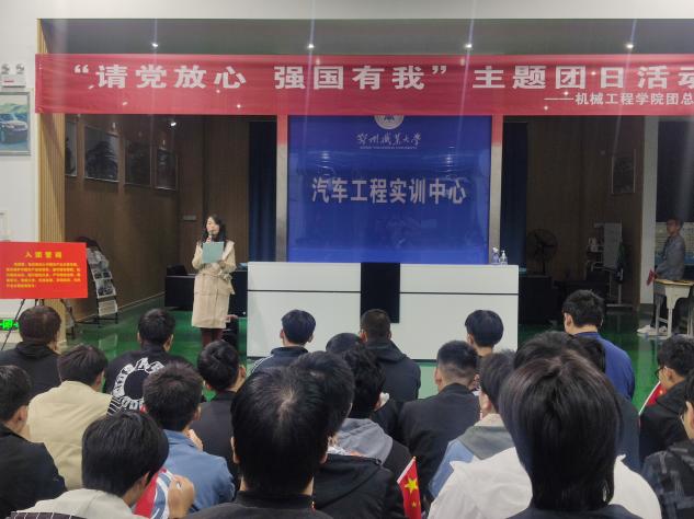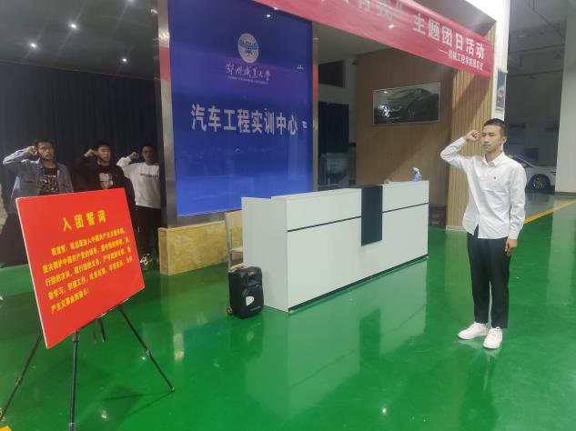 团总支书记王景秋讲述了开展主题团日活动的背景和意义。团员青年迎团旗,重温入团誓词,齐唱团歌,歌声洪亮,气势恢宏。嘹亮的团歌声响彻汽车实训楼,同学们的热情和激情,表达了团员青年对团旗的尊重与敬畏,表达了同学们爱党爱国的情怀。优秀团员赵正军做了《请党放心,强国有我》的演讲,激励团员履行应尽的责任,以实现中华民族伟大复兴为己任,不负韶华发挥少年自身价值,鞭策我们不能荒废学业,提前做好考试准备,才不会辜负自己的青春。