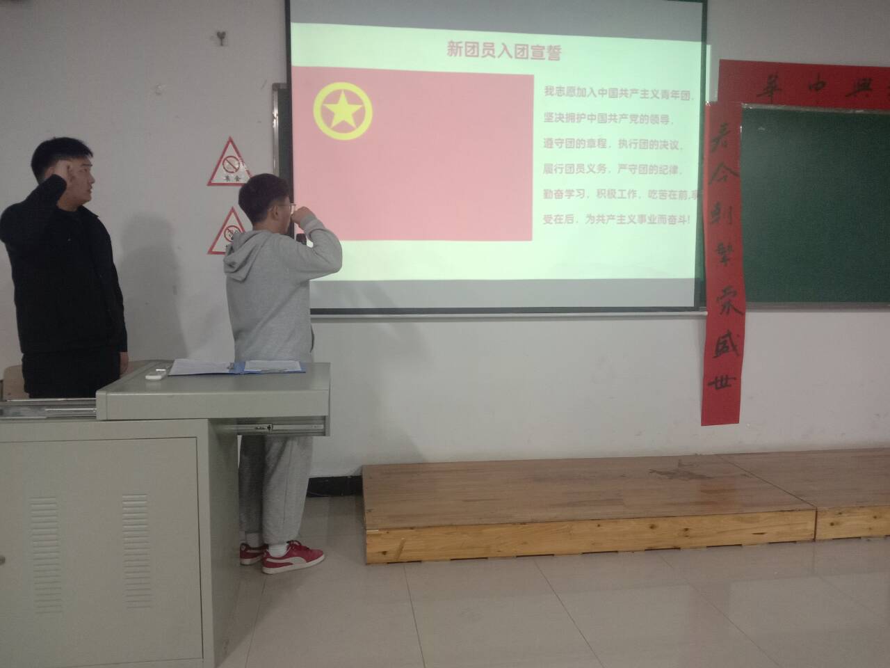 在全体起立奏唱国歌后,举起右拳重温入团宣誓,让同学们牢记使命,为国奉献。