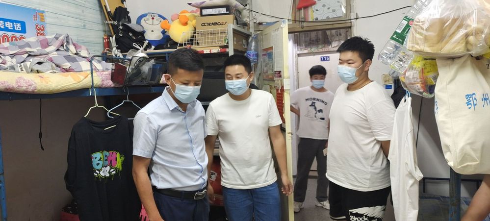 走访过程中,龚伟详细了解了同学们在校园封闭管理期间的日常生活和学习情况,并结合当前疫情防控形势叮嘱同学们严格遵循学校各项管理规定,牢牢树立疫情防控意识,共同筑牢疫情防控安全线。同时叮嘱同学们要注重个人及寝室卫生,及时通风,确保寝室安全卫生整洁。龚伟还鼓励同学们在学习之余要加强身体锻炼,注重身体健康,保持积极健康的心理状态。当了解到东五栋E708寝室的赵正军和张强是来自襄阳时,龚伟不禁回忆起了在襄阳招生时的情景,他关切的问询他们现在的学习生活适应不适应,还有什么困难的时候,同学们纷纷表示校园封闭管理期间,学院在各方面考虑得很周到,目前学习生活一切都好,一定会谨记老师们的嘱托,严格遵守学校防疫要求和管理规定,自觉做好个人防护,认真做好学习规划,以最饱满的精神状态迎接期末考试。