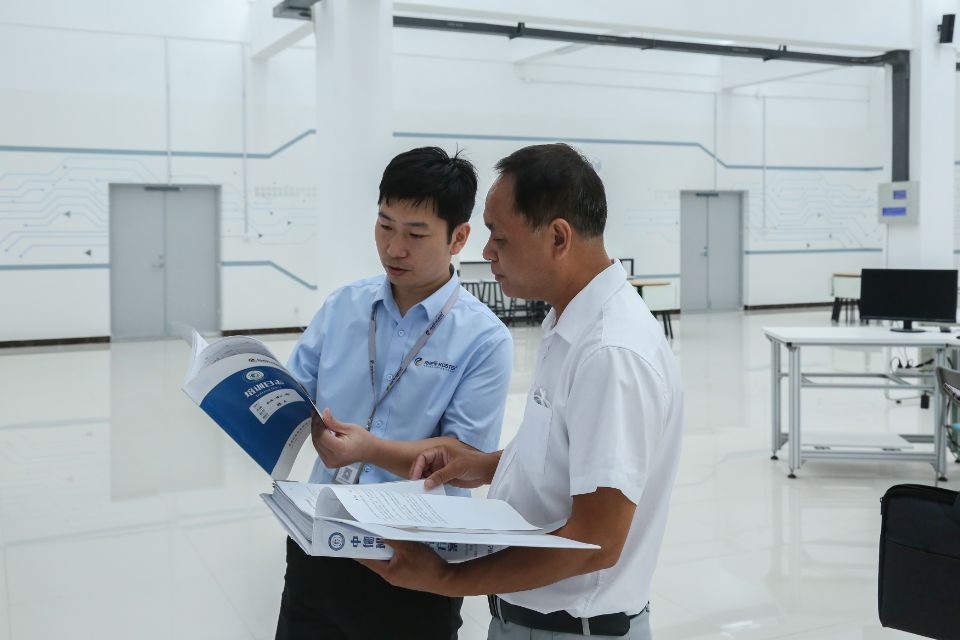 来访领导一行依次参观了中德智能装备研发制造中心、中德智能制造技术公共实训基地、中德智能制造产教融合(双跨)培训中心、中德数字经济暨智能制造赋能中心等区域,对公司“产业赋能教育-教育培养人才-人才支撑产业”的全链条式生态发展理念表示充分肯定。
