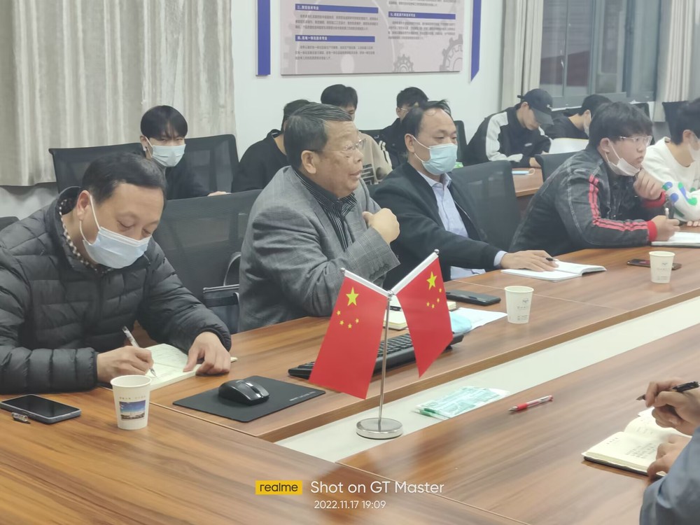 1117日晚19:00,全院深入开展学习党的“二十大”之际,副校长杨殿生到机械工程学院参加2021级新能源汽车技术1班座谈会。班会由班长代招招主持,机械工程学院院长刘宏文、书记李怀功、辅导员徐波和同学们共同参加。