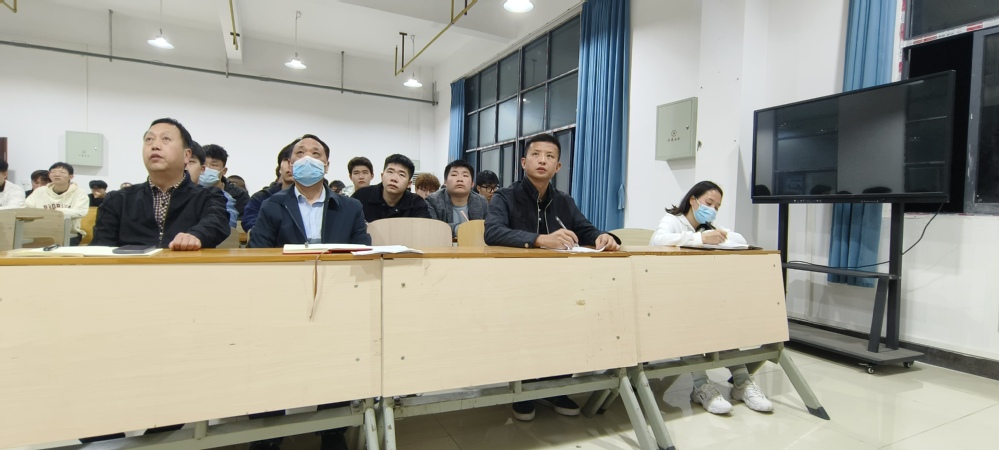 38日晚7时,汽车实训中心308教室,校党委委员、副校长杨殿生以《有理想 敢担当 谱写新征程绚丽的青春篇章》为题,为我院师生作党的二十大精神宣讲报告。机械工程学院领导班子成员、全体辅导员、学生党员及入党积极份子代表参加宣讲会。学院党总支书记李怀功主持会议。