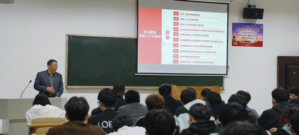 杨校长从党的二十大召开的背景、召开的主题和主要成果等十个方面,对深入学习贯彻党的二十大精神作了深入浅出的分析与解读,并结合学校、学院实际,就如何学习贯彻二十大报告精神提出了具体的要求,为在场师生上了一场精彩的思政课。