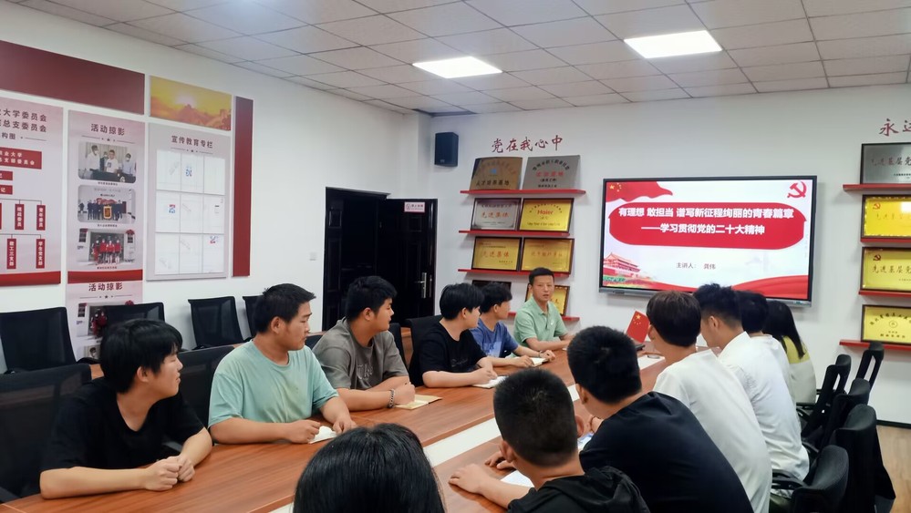 活动伊始,龚伟强调了深入学习贯彻党的二十大精神的重大意义,对二十大报告内容进行系统梳理,围绕党的二十大关于教育、科技、人才和文化自信自强方面的决策部署进行重点解读,希望大家能够充分发挥学生骨干的政治引领排头兵作用,坚持先学一步,学深一层,当好党的二十大精神的学习者、宣传者、实践者,争做“有理想、敢担当、能吃苦、肯奋斗的新时代好青年”。