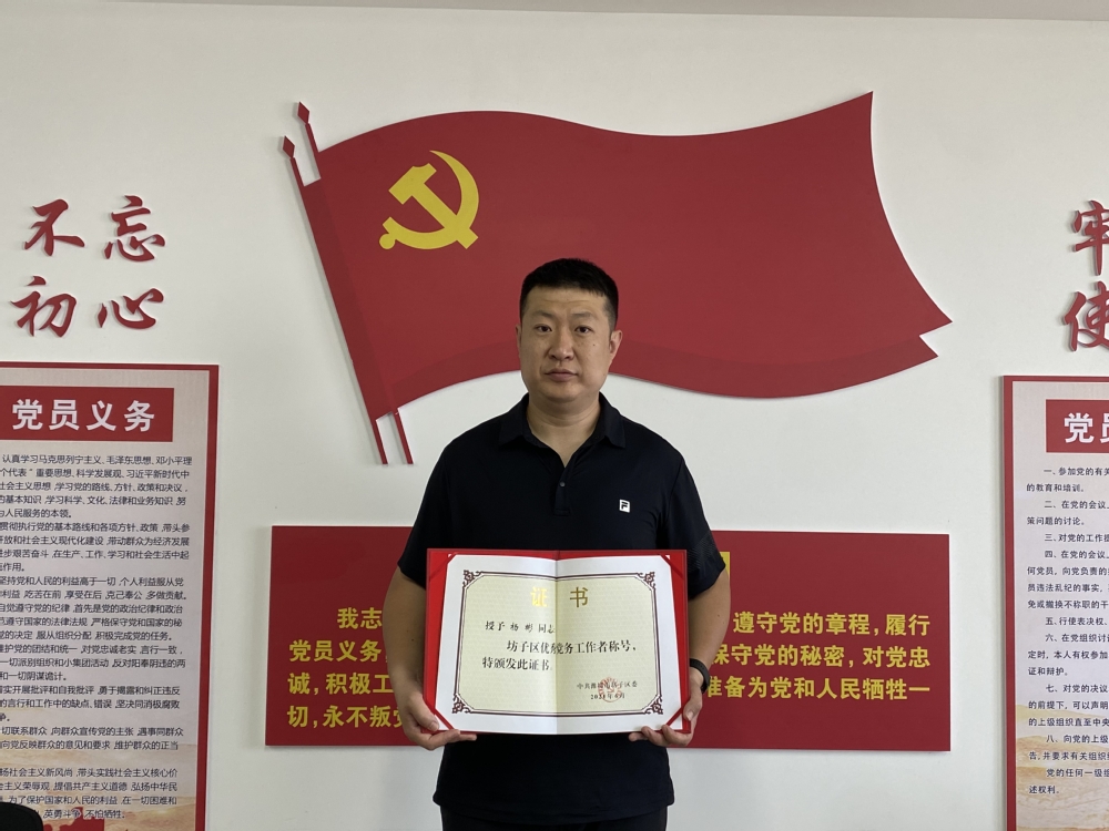 杨彬现任山东省潍坊市坊子区医疗保障局办公室主任、工会主席、党支部组织委员。