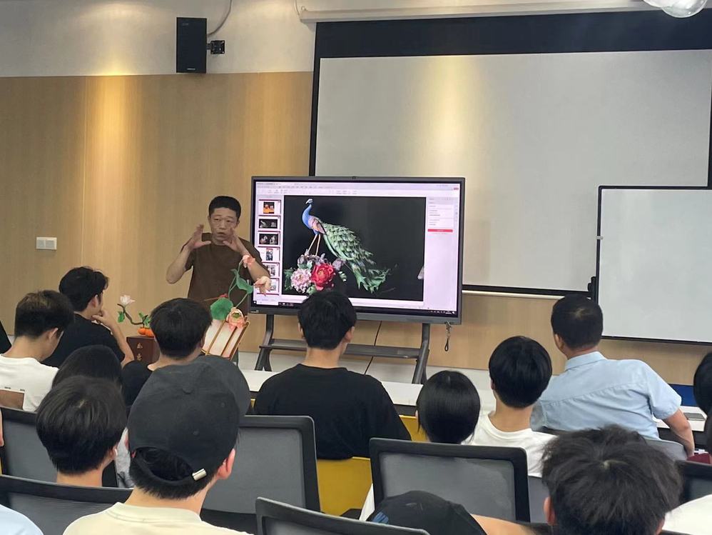 活动伊始,学院党总支副书记龚伟向同学们详细介绍了组织开展此次活动的初衷和意义,勉励同学们要珍惜此次难得的学习机会,积极提升个人技能素质,努力增强社会竞争力。随后,钱毅老师给同学们讲解了面塑的历史、面塑材料、面塑手法等内容,通过视频展示了精彩技艺并教授指导,教学视频中只见一个个多彩的面团,在他的手中几经捏、搓、压、揉、掀,用小竹刀灵巧地点、切、刻、划、塑成身手头面,披上装饰和羽毛,顷刻之间,一件件栩栩如生的艺术品便脱手而成,同学们无不惊叹传统非遗技能的魅力。