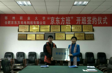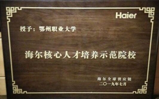 图6校企合作订单班-京东方班 图7我校被授牌为“海尔核心人才培养示范校”