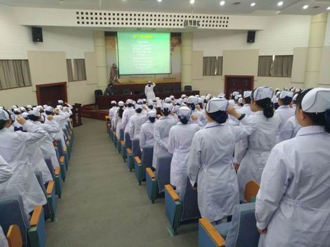 并带领学生面对南丁格尔誓言进行了宣誓,随后,讲了南丁格尔的理论—环境理论,藴含着丰富的人文关怀思想,进而介绍了护理人文关怀的理论、实践、进展。在讲座过程中,万晓燕教授从古到今、从国外到国内列举了大量的案例佐证说明,护理的本质就是关怀、照护。同学们听的认真,现场气氛很好。