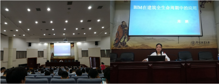 周教授生动的讲解,通过经典的工程案例让同学们了解到BIM应用不仅仅局限于设计阶段,而是贯穿于整个项目全生命周期的各个阶段:设计、施工和运营管理。BIM电子文件,能够在参与项目的各建筑行业企业间共享。建筑设计专业可以直接生成三维实体模型;结构专业则可取其中墙材料强度及墙上孔洞大小进行计算;设备专业可以据此进行建筑能量分析、声学分析、光学分析等;施工单位则可取其墙上混凝土类型、配筋等信息进行水泥等材料的备料及下料;开发商则可取其中的造价、门窗类型、工程量等信息进行工程造价总预算、产品定货等;而物业单位也可以用之进行可视化物业管理。BIM在整个建筑行业从上游到下游的各个企业间不断完善,从而实现项目全生命周期的信息化管理,最大化地实现BIM的意义。随后,讲座进入互动环节,同学们积极提出了自己的疑问,对此,周鹏教授也一一作了回答,现场聆听者受益匪浅!