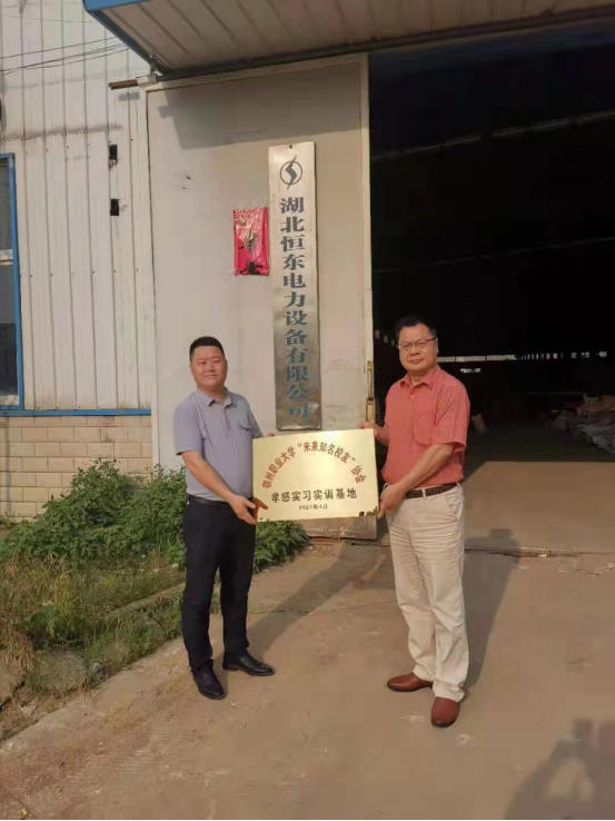 6月2日下午,校党委委员、副校长、校友会常务副会长胡海平率校友办一行来到校友刘长乐的企业所在地孝感,兴致勃勃地为鄂州职业大学“未来知名校友”协会孝感实习实训基地挂牌,并为校友刘长乐颁发“知名校友”荣誉证书。