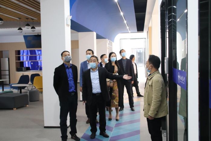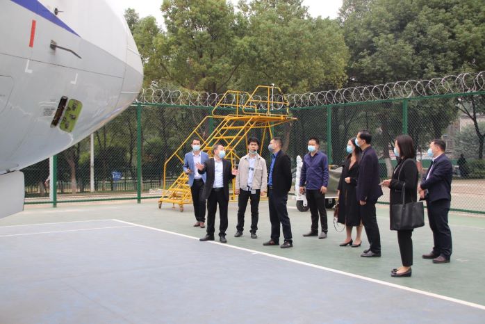 万华军一行参观了我校的航空工程学院实训中心、双创学院、商学院智慧物流实训中心及医学院实训中心。