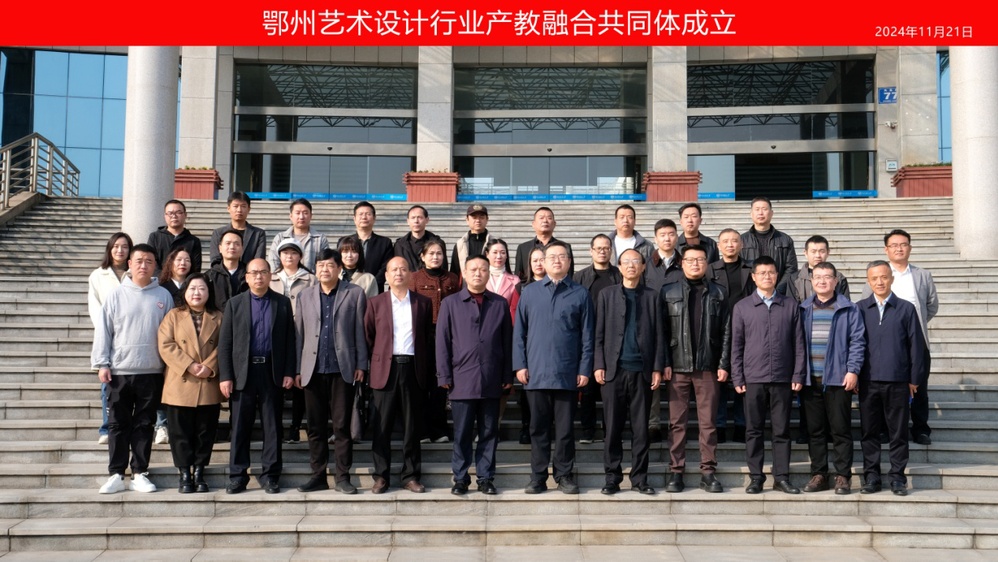 2024年11月21日,鄂州艺术设计行业产教融合共同体在我校成立。校党委副书记、副校长高飞,副校长王红山,鄂州市鸿达印务有限公司董事长李庚寅,湖北第二师范大学艺术学院院长金波,市教育局二级调研员柳英忠等出席大会,20余家院校、行业和企业嘉宾和我校相关职能部门、艺术学院师生代表共同见证共同体的成立与揭牌。