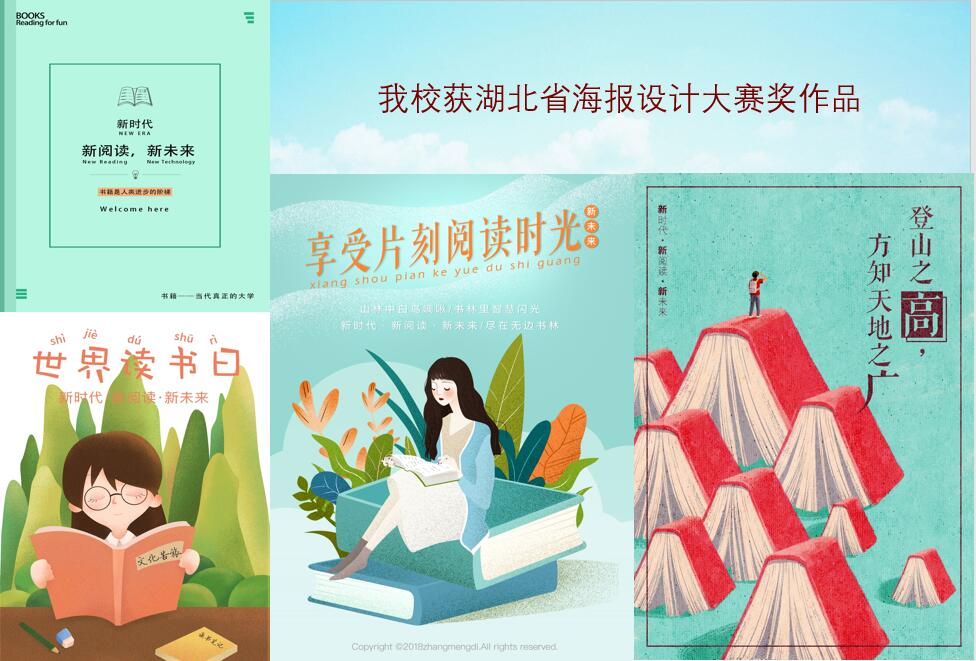 湖北省首届“图书馆杯”主题海报创意设计大赛是全国首届『图书馆杯主题海报创意设计大赛』的湖北省赛区,由中国图书馆学会阅读推广委员会指导,湖北省高校图工委、湖北省图书馆学会联合主办,广东粤图之星科技有限公司协办,全省各公共图书馆和高校图书馆参与组织,面向读者征集阅读推广创意海报。湖北省共计83所图书馆报名作为组织单位参与大赛,共有1754名读者报名参加,通过审核作品1546件。其中,我校图书馆章梦荻读者凭借作品《新未来·享受片刻阅读时光》成功晋级全省总评,获得全省二等奖;赵娜颜读者凭借作品《书—悦—品》、宋可读者凭借作品《登山之高》、范文萍读者凭借作品《悦读时刻》成功晋级全省总评,获得全省优秀奖;我校图书馆荣获湖北省赛区优秀组织奖;鄢宁、杜利老师荣获优秀组织奖个人奖。