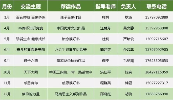 为了保证每月的读书交流活动效果,我校图书馆分别安排了馆员老师和读书协会骨干具体负责每期活动。活动时间计划在每月月底的周四下午举行,根据参加的人数安排交流地点。