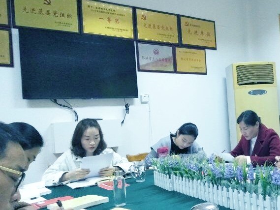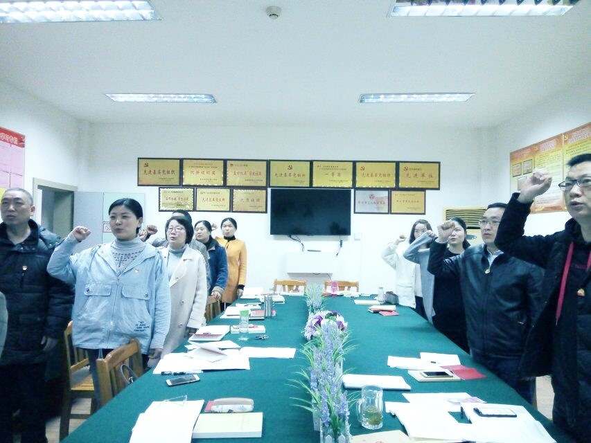 首先全体党员由邵晓红老师带领大家背诵入党誓词,由王萍老师带领大家诵读新《党章》第九章党组第48-50自然段,由组织委员洪佳平同志通报3月份党费收取情况。