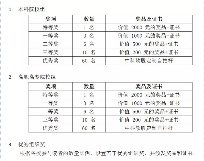 中科软股将为获奖者颁发如下奖项(颁奖时间和地点请随时关注图书馆通知):