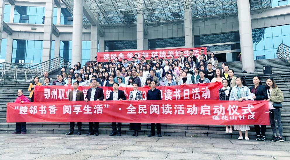 人间四月,春风化雨。4月23日早晨7:30,鄂州职业大学师生及莲花山社区成员热情洋溢,相约欢聚在校图书馆广场,举行了“读经典 学新知 链接美好生活”为主题的第24个世界读书日全民阅读活动启动仪式。本次活动由鄂州职业大学图书馆馆长宋其湖主持,鄂州职业大学校长周峰、校党委副书记周岫、校党委委员副校长胡海平、党委宣传部部长陈中林及学校所在地——莲花山社区负责人等出席了本次活动。