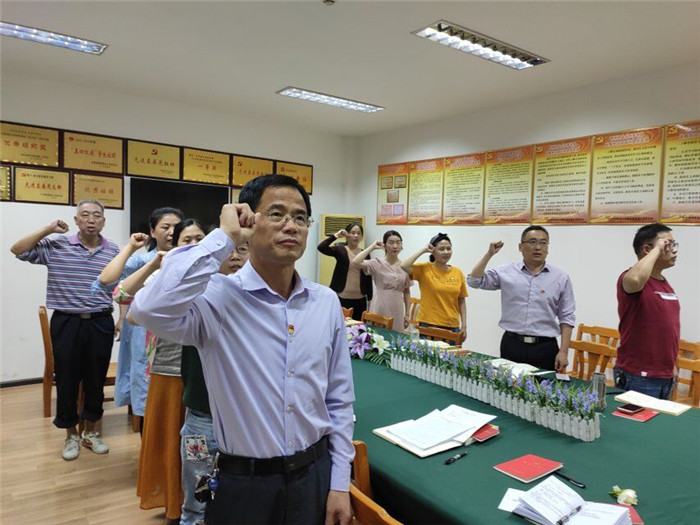 全体党员在宋其湖同志的带领下重温了入党誓词,并集体诵读了新党章的第七章,洪利花同志通报了本月党费缴纳情况。至此,本次支部主题党日活动圆满完成。