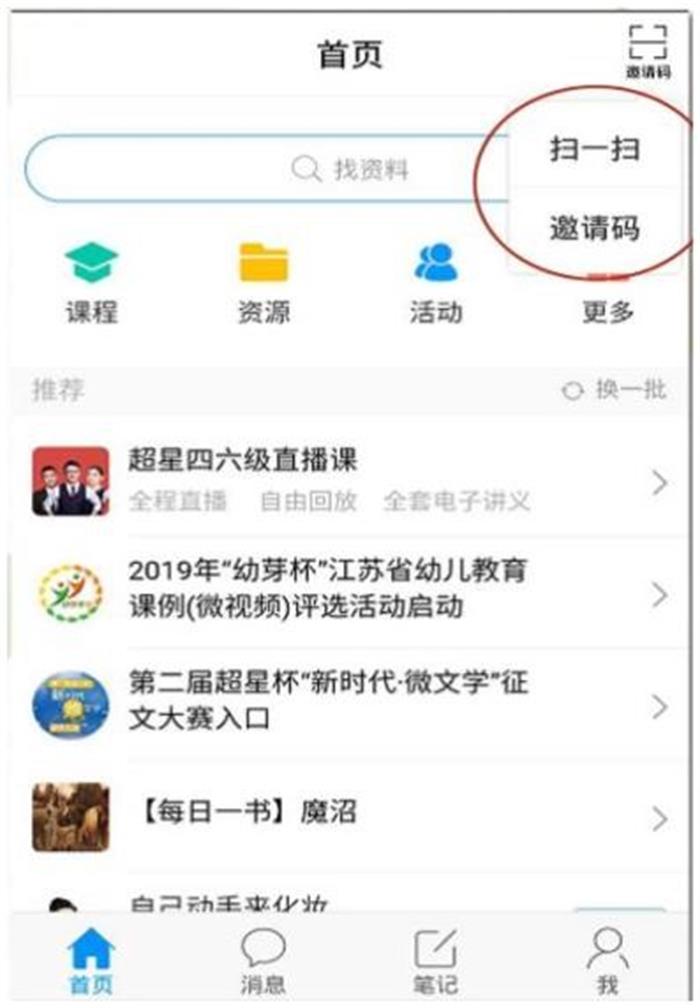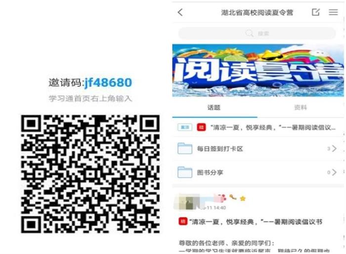 2.进入活动小组 登录成功后,在学习通首页右上角输入邀请码:jf48680,或者扫描下方二维码加入“湖北省高校阅读夏令营”小组,即可参加暑期阅读活动。