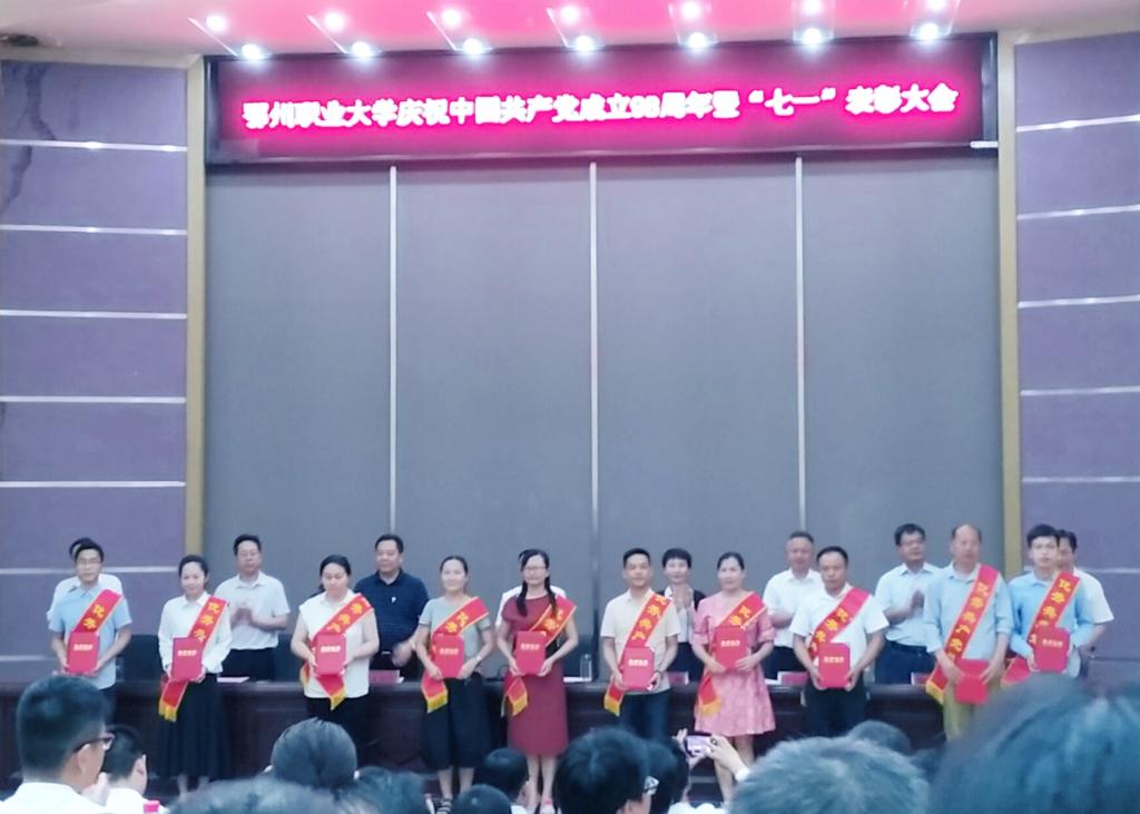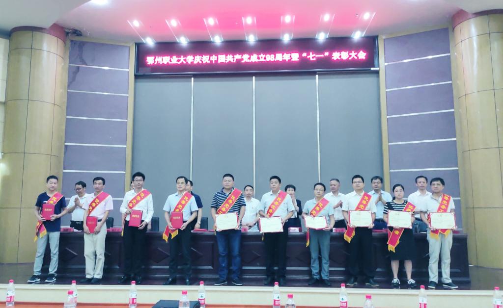 红心向党,聚力鄂大。7月1日上午,鄂州职业大学庆祝中国共产党成立98周年暨“七一”表彰大会在主教学楼学术报告厅隆重举行。图书馆再次荣获学校“先进基层党组织” 称号,宋其湖、杜利同志分别荣获学校“优秀党务工作者”、“优秀共产党员”称号。