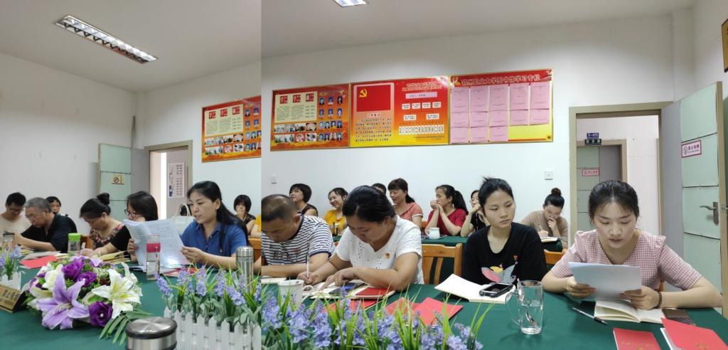 “3”环节后,首先进入集中学习环节。图书馆副馆长雍全明同志传达了学校暑期干部培训会议精神,介绍了今年学校招生情况;颜斌同志组织学习了习近平总书记全国教育大会讲话精神;涂小丽同志带领大家学习了《国家职业教育改革实施方案》要点内容;叶娟同志组织学习了学校十三五规划修订稿。与会成员对学校所面临的困难、机遇和挑战有了进一步的了解,对新学期学校建设发展的目标、任务有了进一步的认识,也进一步明确了学校今后发展的方向。